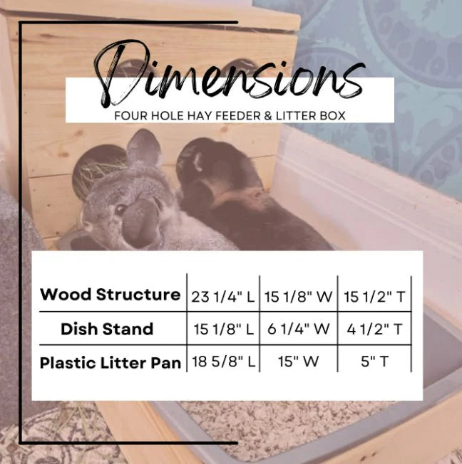 It's time to move away from plastic and wired hay racks that are too small, too lightweight, too cheap, and too easily chewed through! These hay feeder and litter box combos are made by small animals parents for small animal parents! Tried, tested and loved by bunnies all over Canada!