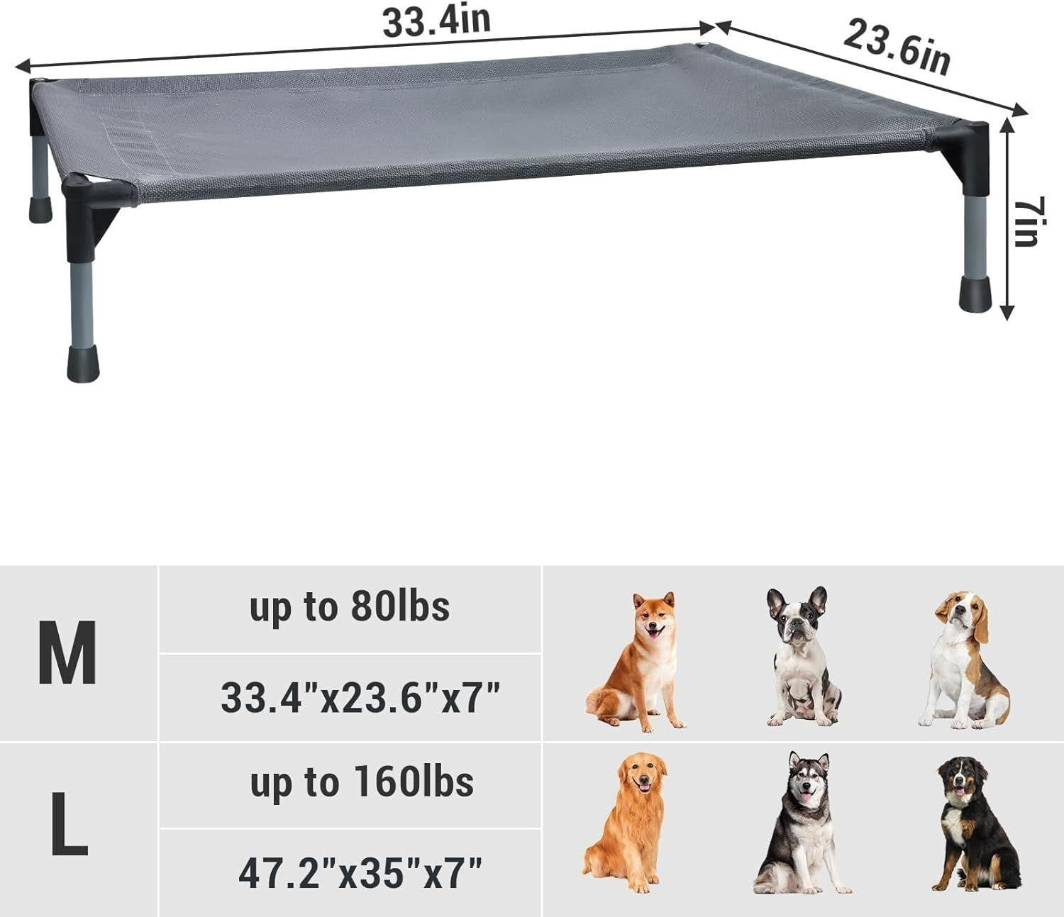 - Elevated outdoor dog bed; raised cot for medium pets