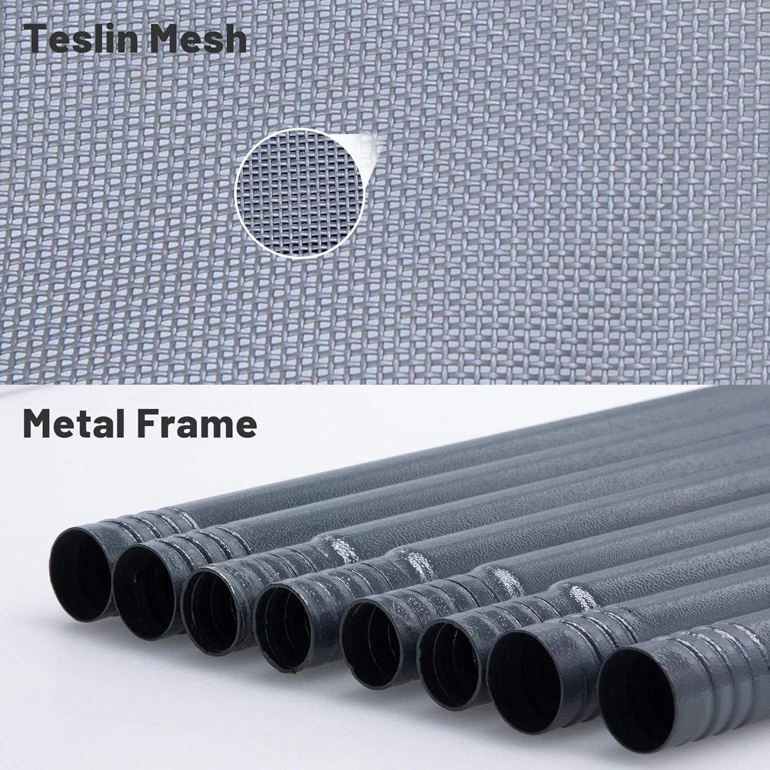 - Metal frame with washable, breathable mesh and non-slip feet